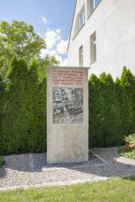 Gedenktafel Todesmarsch vor Erlau und Grabstein am Friedhof Tüntenhausen